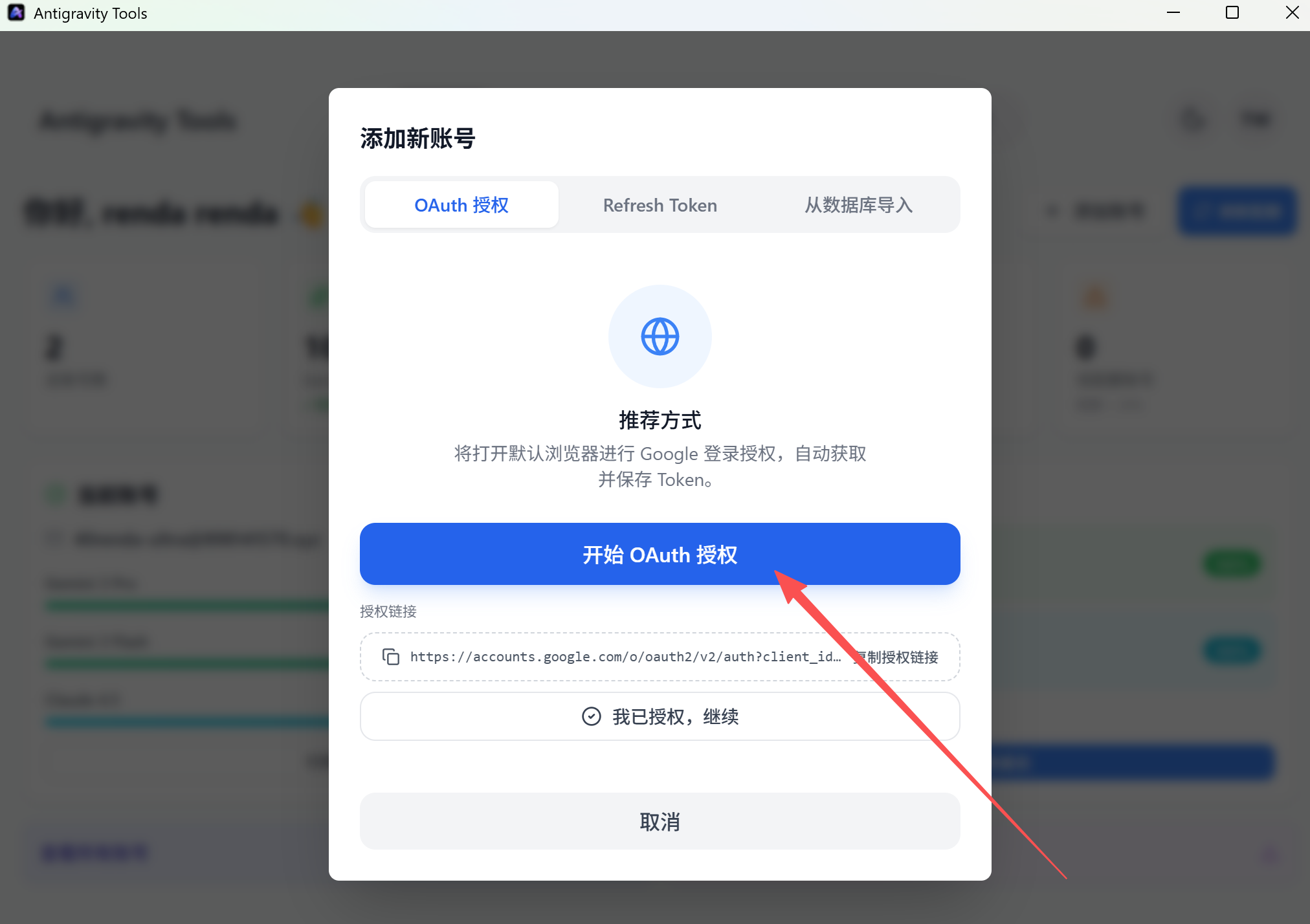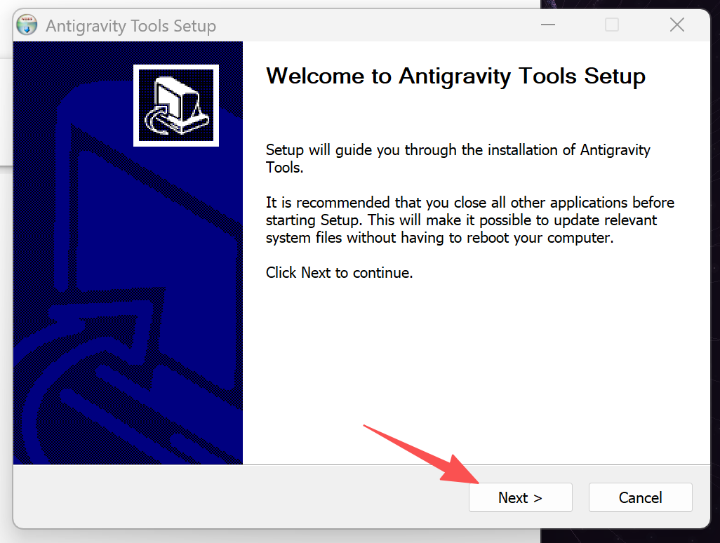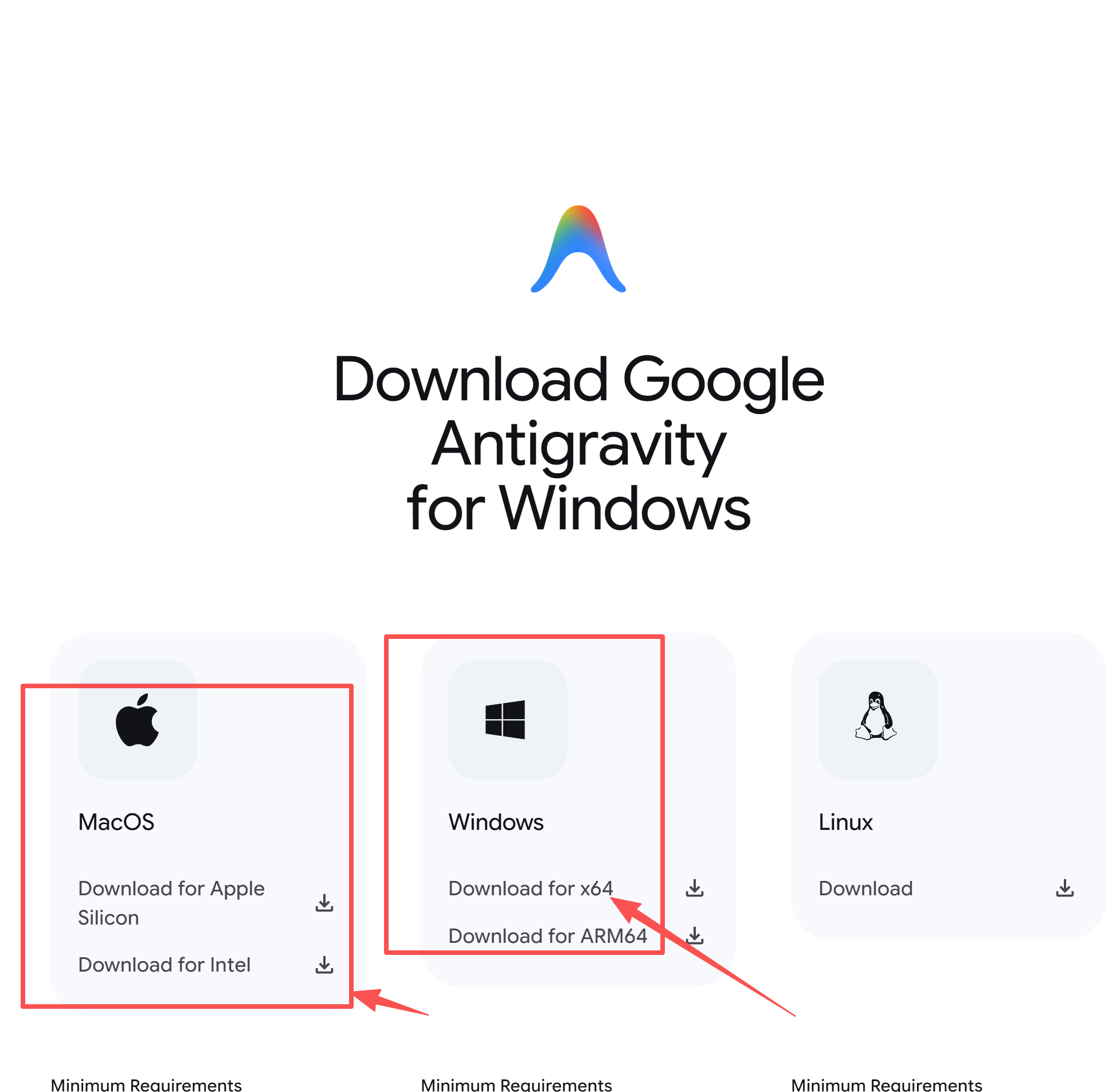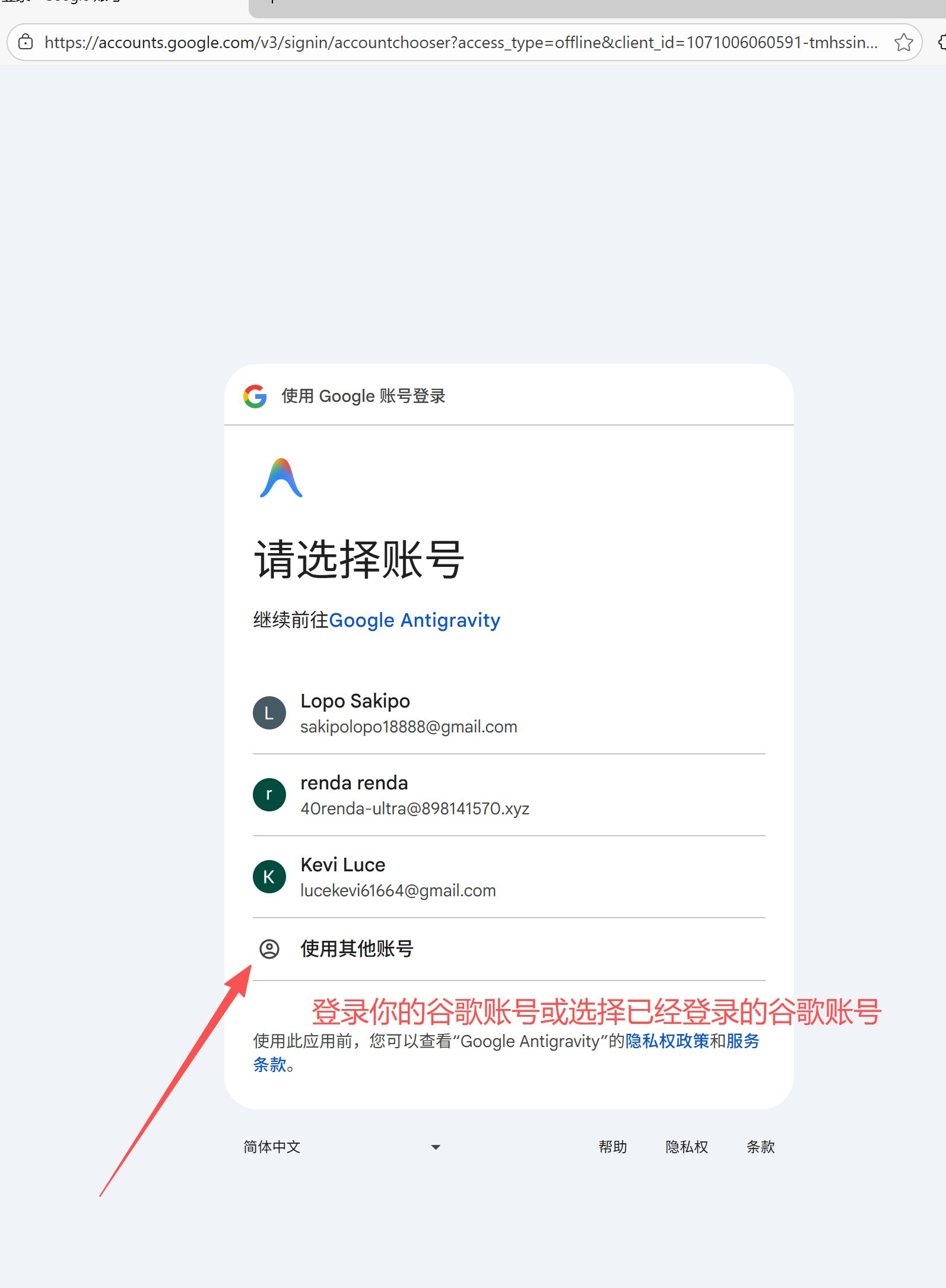## 第一步:打开https://antigravity.google/download 根据自己的操作系统去下载;  ## 第二步:安装好Antigravity  ## 第三步:下载安装登录Antigravity登录工具: windows下载这个:https://bingfan.lanzouw.com/b0mc9sxmh 密码:1234 mac下载这个:https://bingfan.lanzouw.com/b0mc9sxni 密码:1234 第四步:安装打开登录工具      ## 第五步:打开Antigravity    到达这步后,执行第六步,通过Antigravity管理工具登录。线路要用美国地区。  ## 第6步:通过Antigravity管理工具登录:
